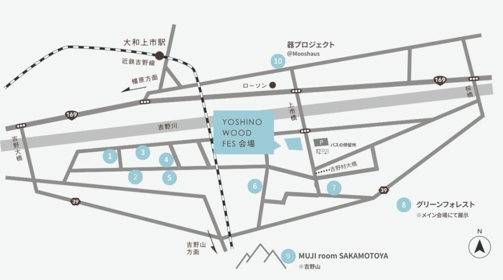 ●よしのウッドフェス会場の隣に駐車場がございますが、混雑緩和のため公共交通機関でお越しください。