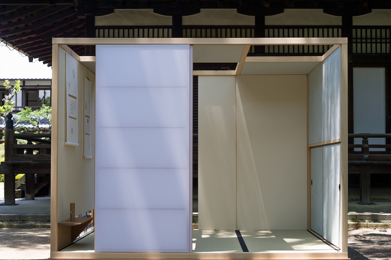吉野ひのきを薄く削り貼り合わせて作りました「癒しの灯り」。10/12〜12/1 金峯山寺蔵王堂 本坊にて作品展示中