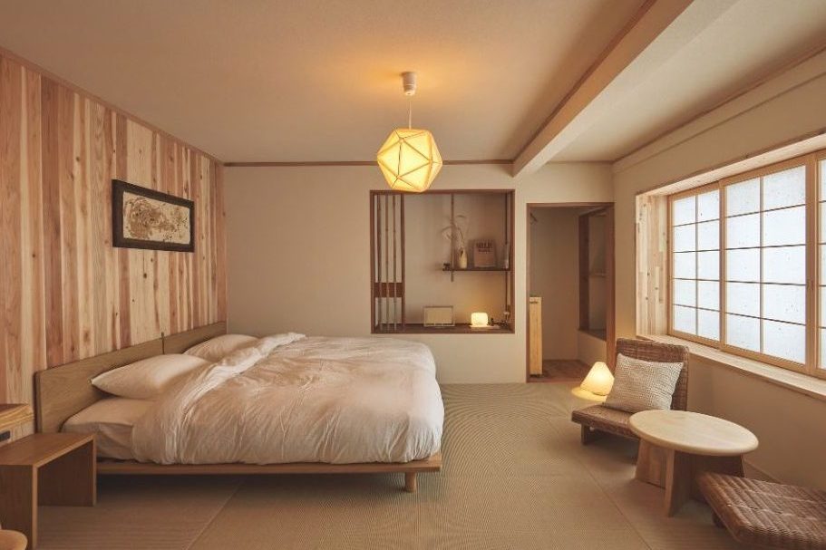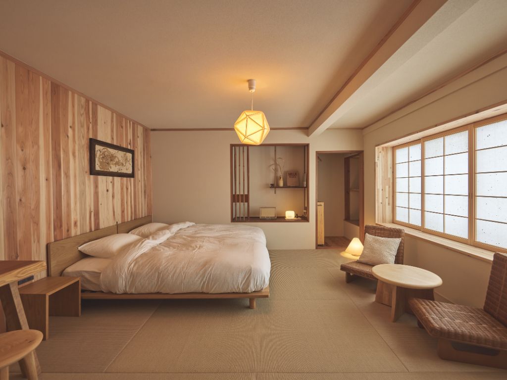 無印良品が設えた客室空間にて、オーナーの坂本さんご一家がお客様をおもてなしするという新しいスタイルの宿です。無印良品の商品と地域作家さんが作成した家具と照明とが融合する唯一無二の空間です。ぜひ施設にいらしてください。。